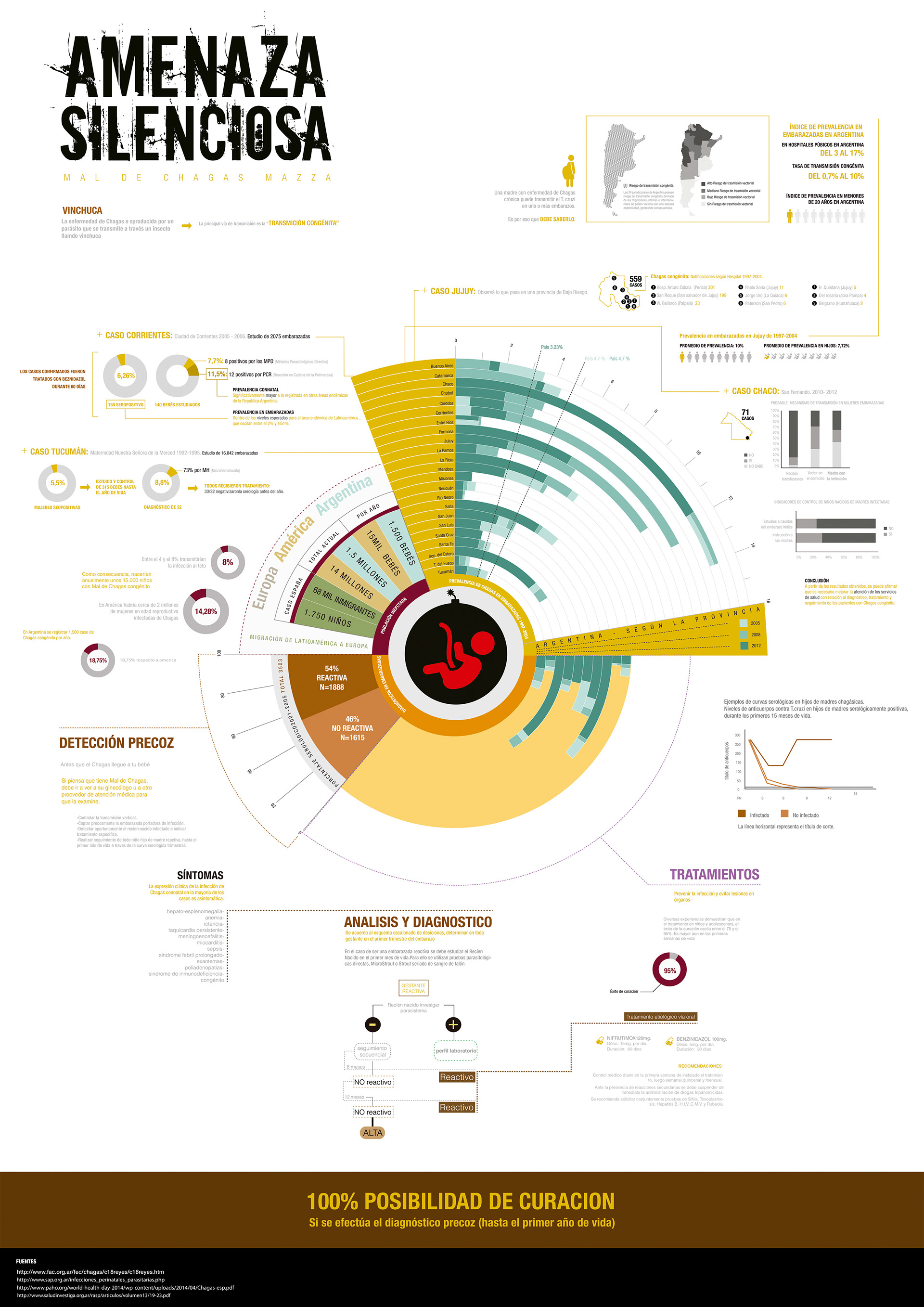 Infografía para campaña concientizadora sobre prevención del Mal de Chagas prematuro. Infography for campaign about concientization of premature Chagas disease.